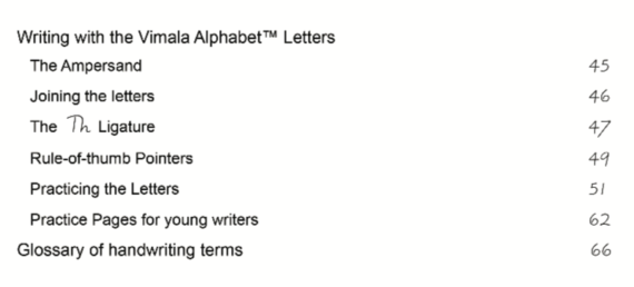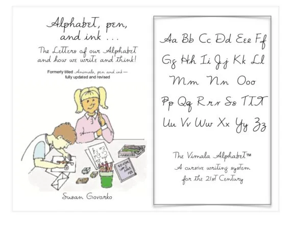 A visually rich guidebook, Alphabet, pen, and ink features the Vimala Alphabet™ Handwriting System.